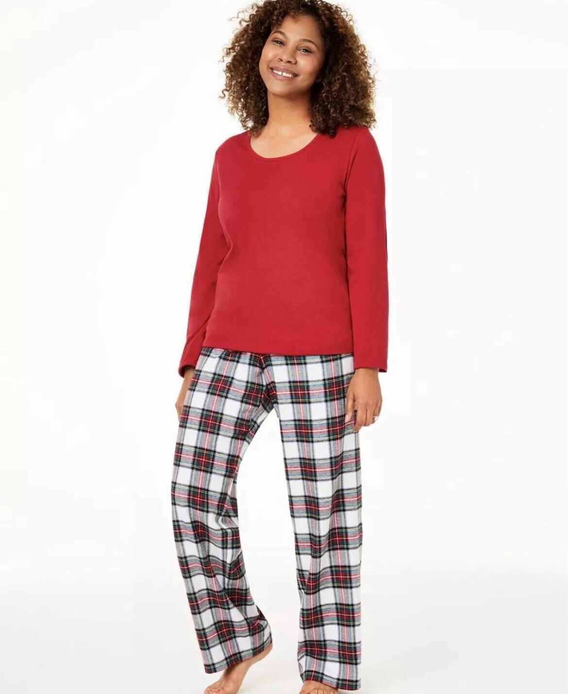 The set includes a comfortable pair of long sleeve red top and plaid Stewart Plaid bottoms.