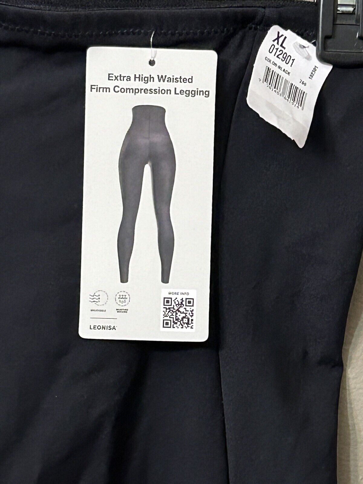 Leonisa Women's Black Firm Tummy-Control Shapewear Compression Leggings